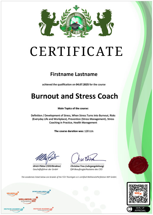Ist die Ausbildung zum Burnout- und Stress-Coach anerkannt? Erhalte ich ein Zertifikat?